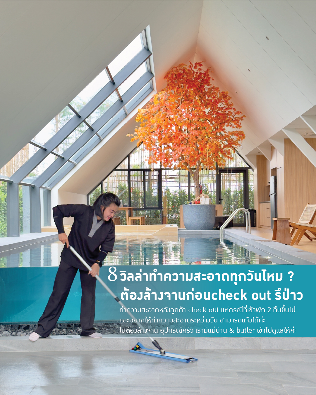 8 ) วิลล่าทำความสะอาดทุกวันไหม ? ต้องล้างจานก่อนเช็คเอ้ารึป่าว?