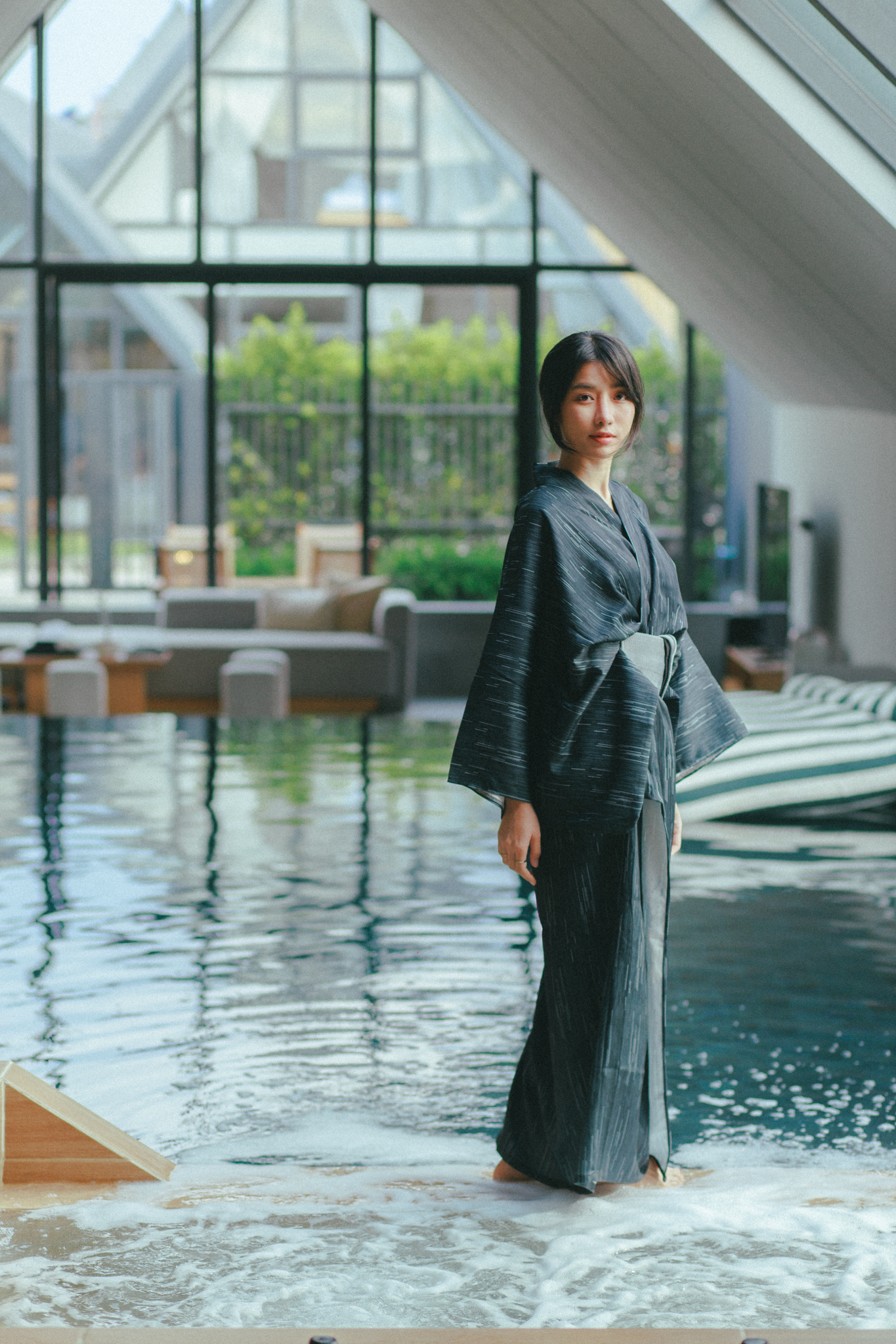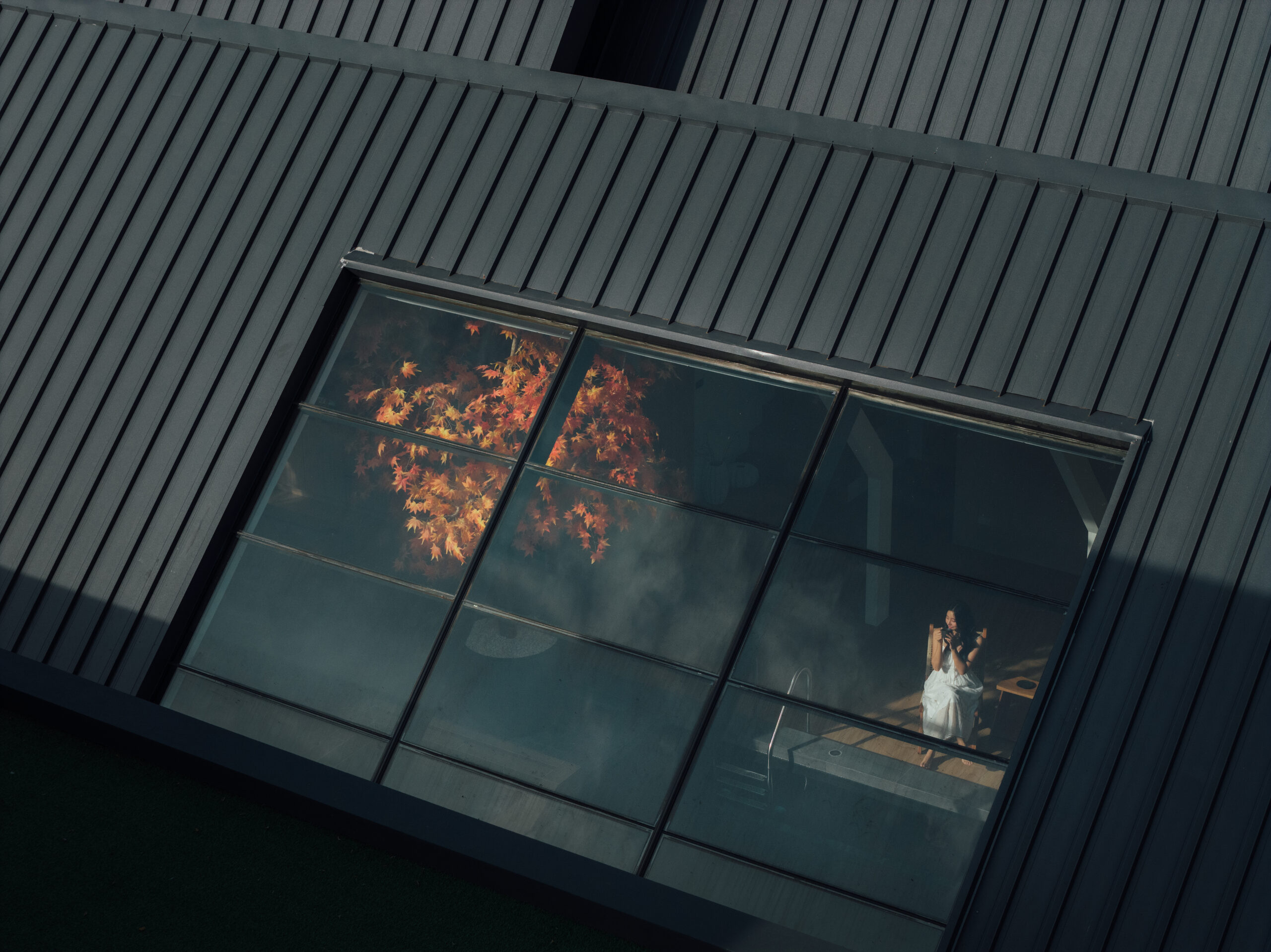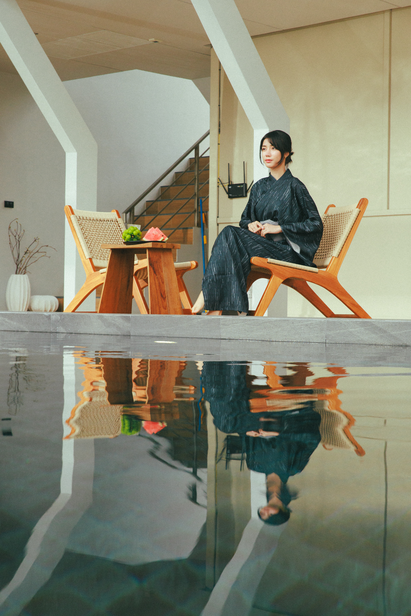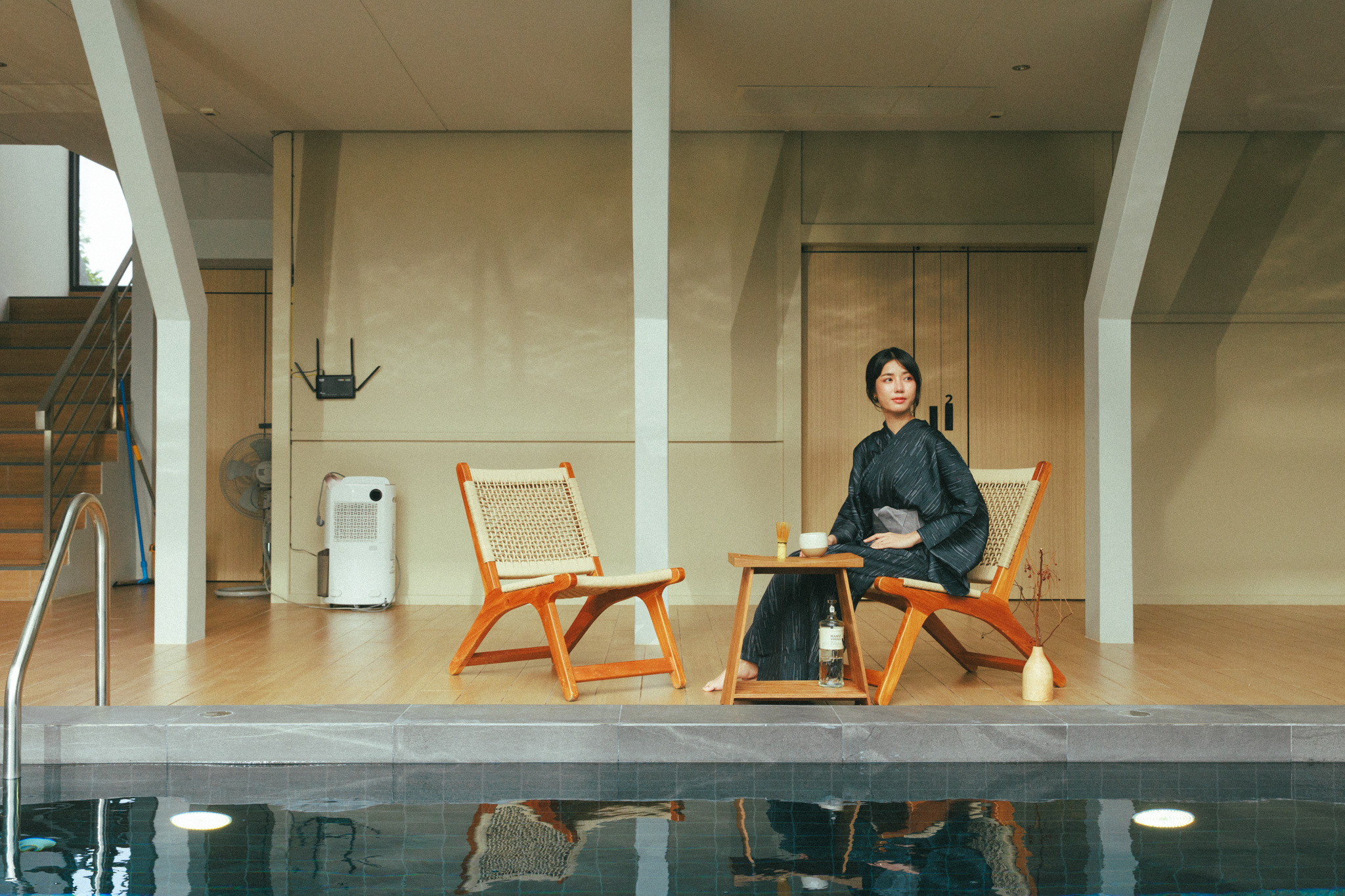 แสงธรรมชาติที่สาดส่องผ่าน Skylight roof มาที่สระว่ายน้ำ แล้วเกิด Reflection ก่อให้เกิดงานศิลป์แบบ WABISABI ที่ทางวิลล่าเราตั้งใจ