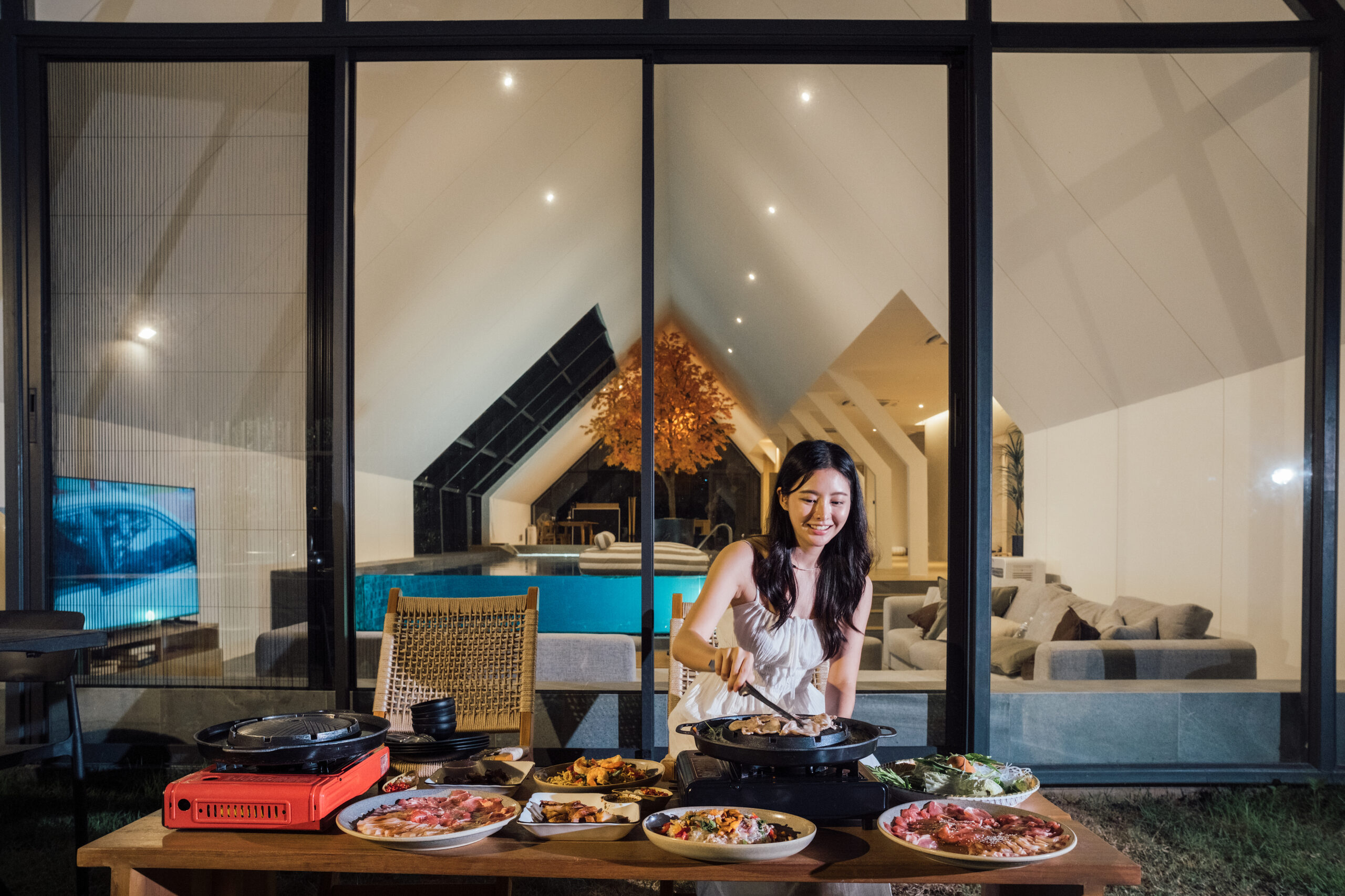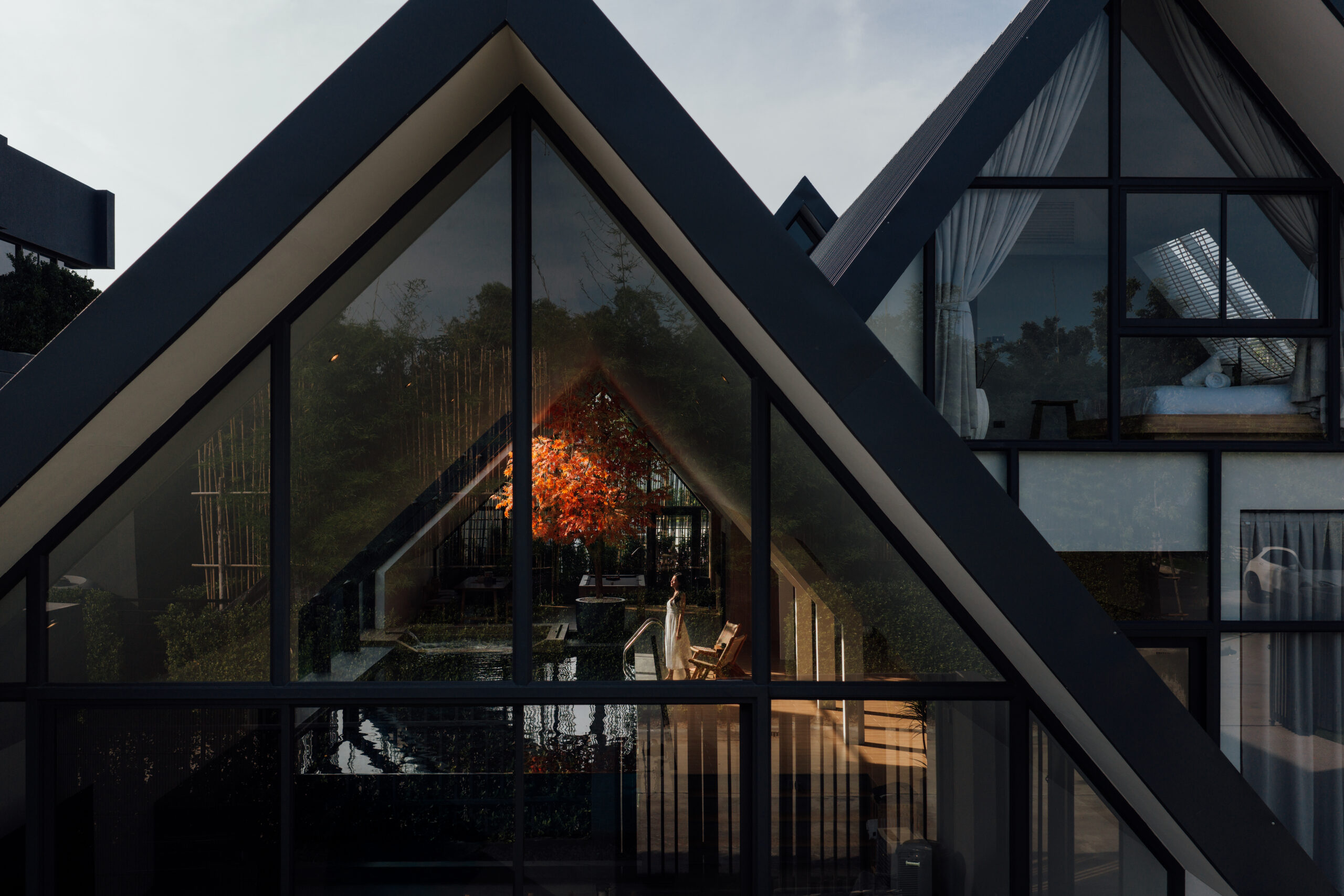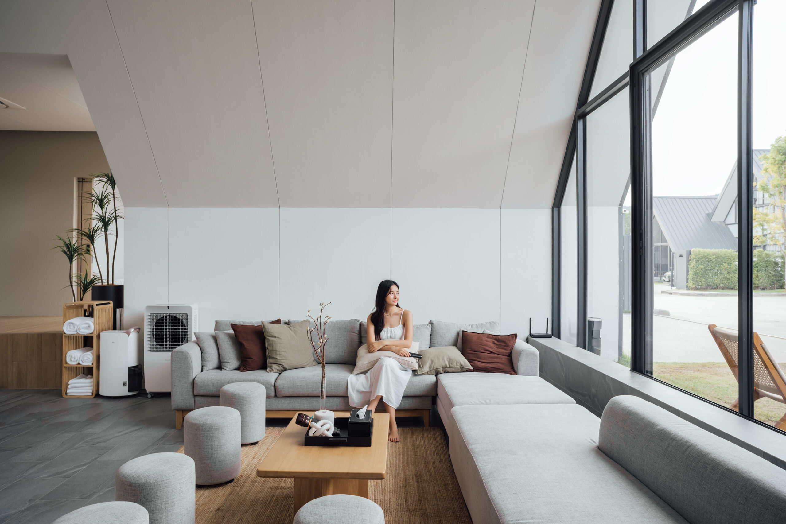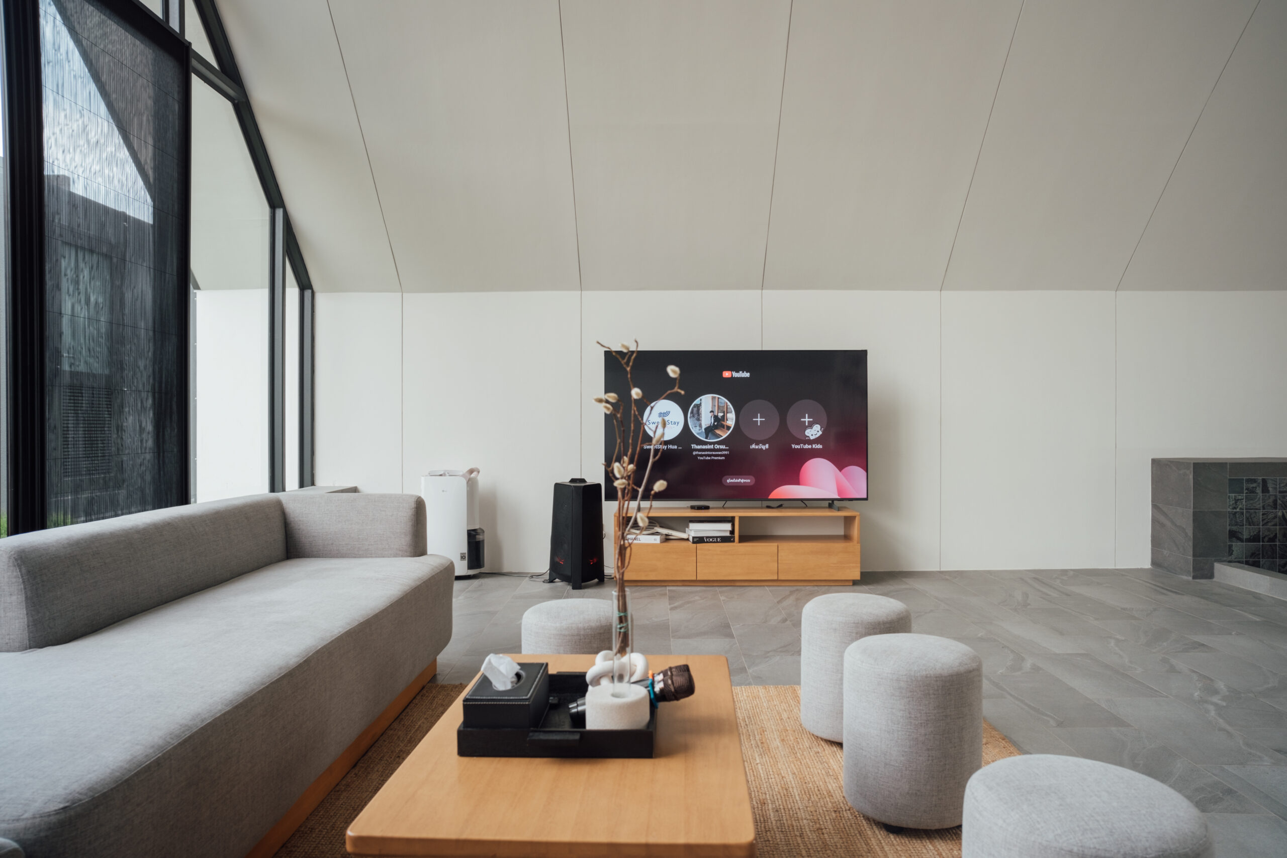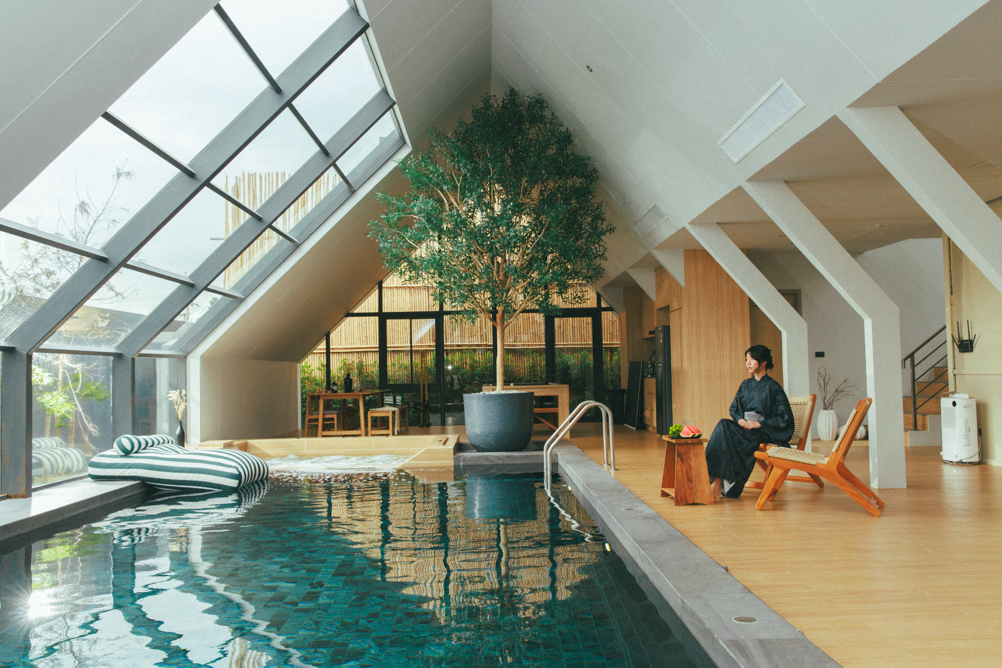 วิลล่ามาใน concept INDOOR POOL สระว่ายน้ำ | ห้องนั่งเล่น | ห้องนอน อยู่ภายในตัวบ้าน เชื่อมต่อทุก function เข้าไว้ด้วยกัน มีจุดเด่นเป็น Skylight roof กระจกบานใหญ่กลางบ้าน ทำหน้าที่เชื่อมต่อธรรมชาติภายนอกสู่ภายในตัวบ้านเข้าไว้ด้วยกัน